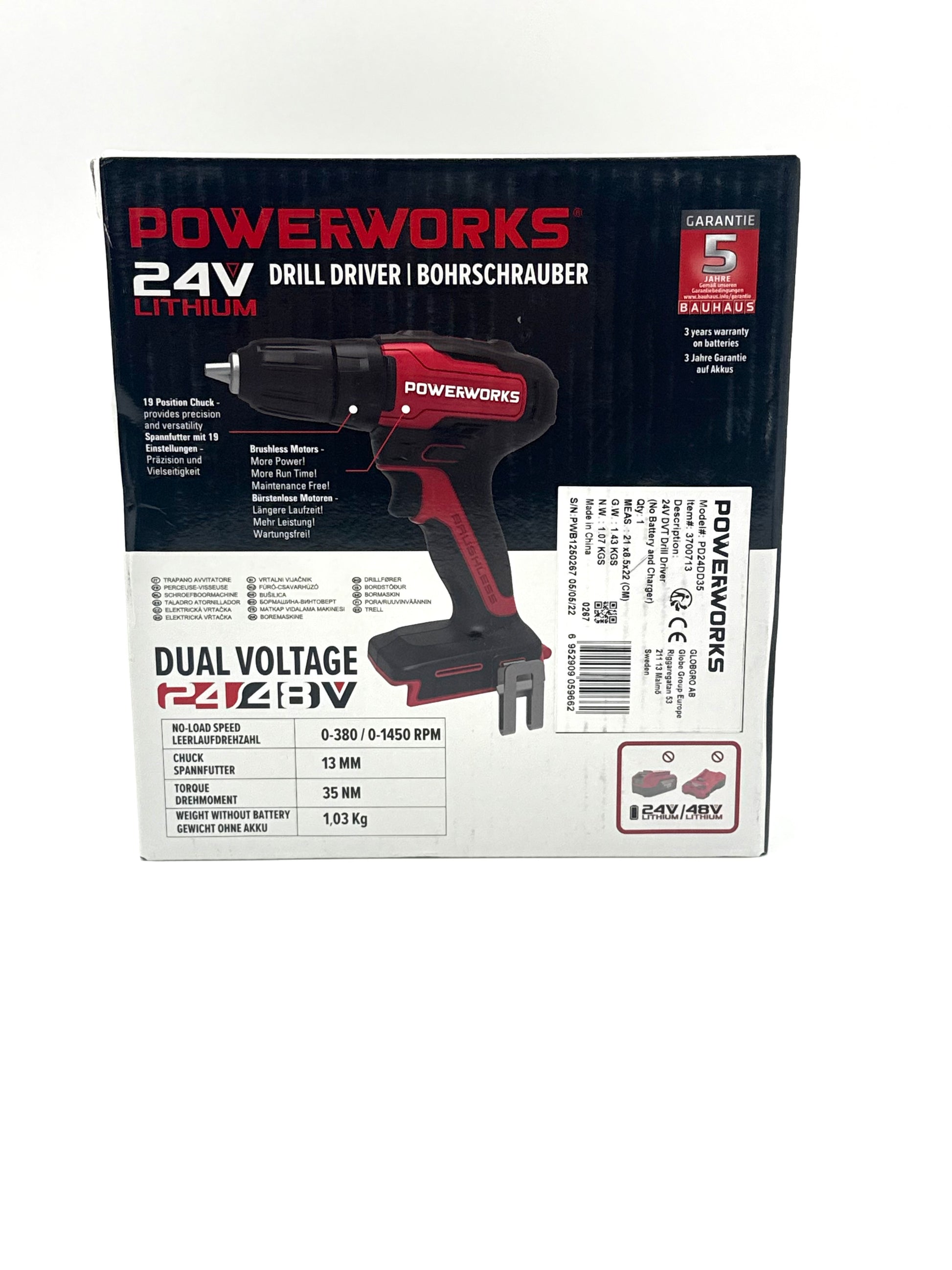 Powerworks PD24DD60 Akkuschrauber 24V Bohrschrauber ohne Akku & Ladegerät
